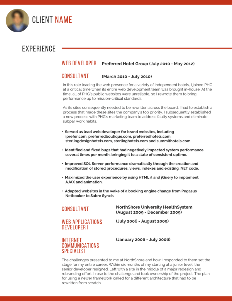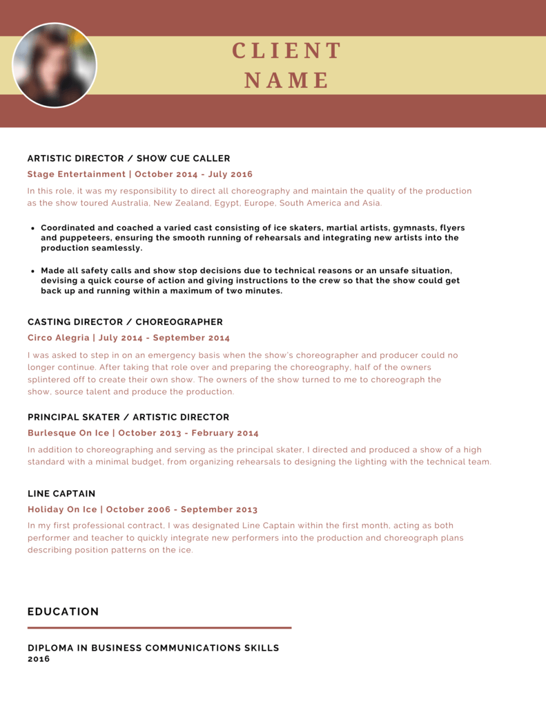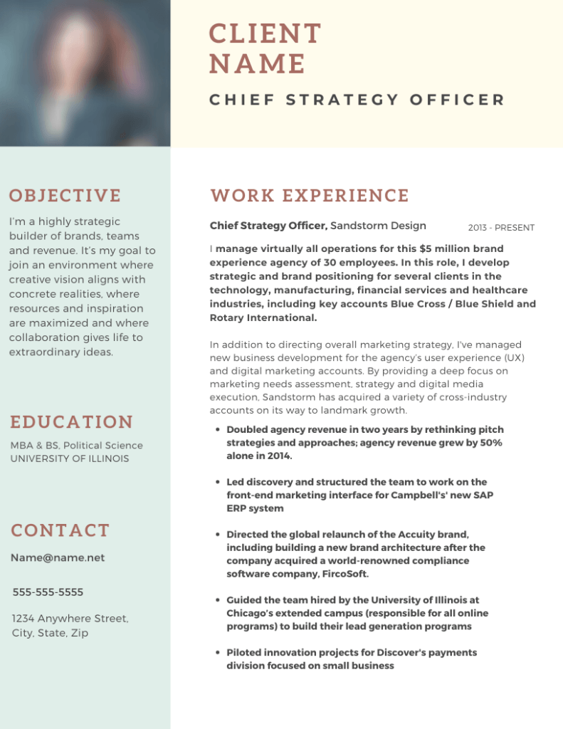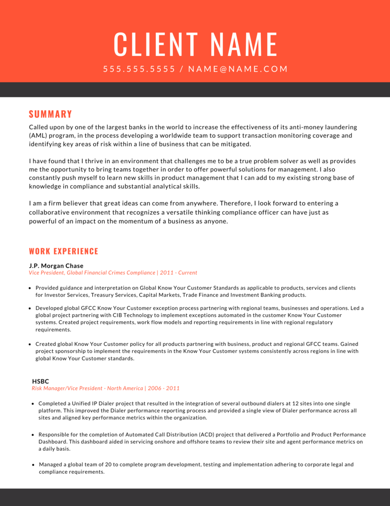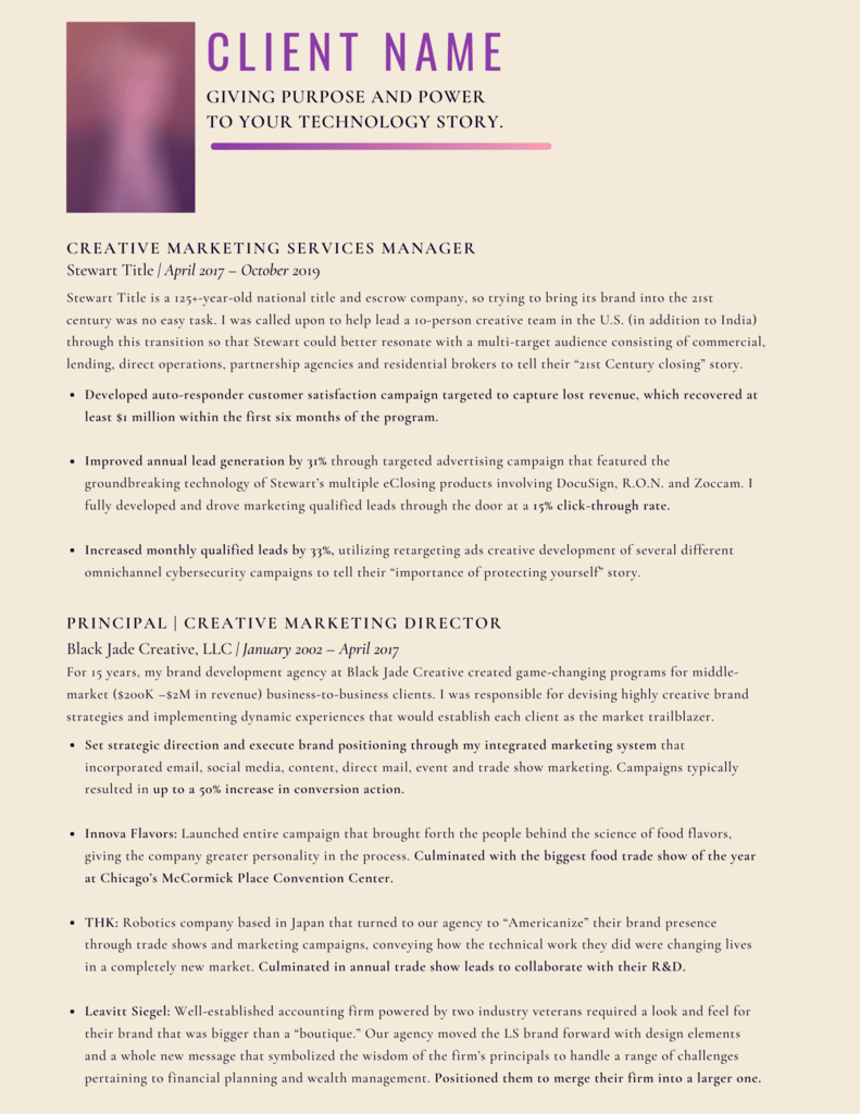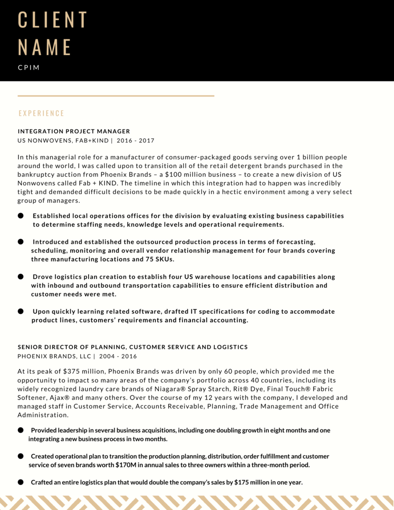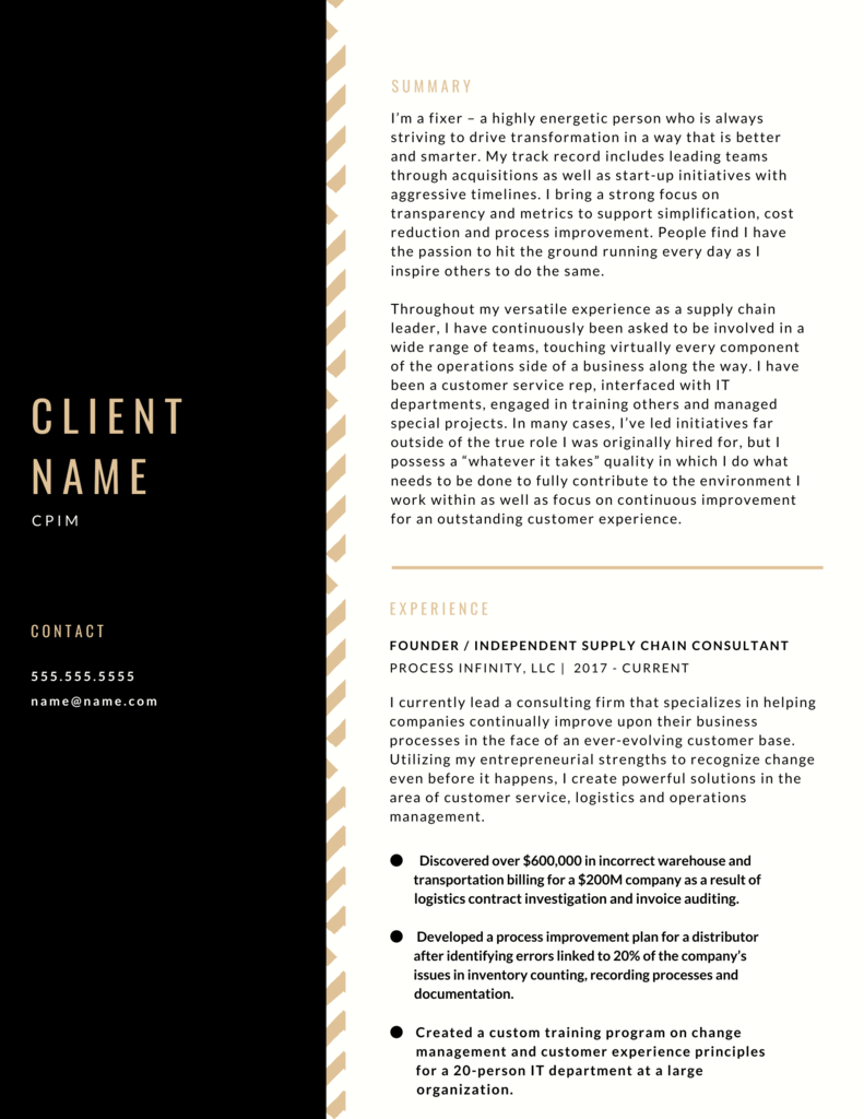 The Resume Design Gallery you’ll see here shows why, when you combine the superb professional resume writing of Caliber with an outstanding design, you’ll have the 1-2 punch that no other resume services can touch. Make that 1-2-3 punch. We’ll provide the branding power. Then you’ll go kick butt on your interview and seal the deal.
