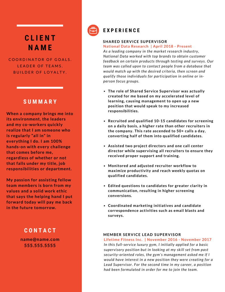 Sure, we could have supplied terrific professional resume writing with Resume Makeover. But really, if you’re going to be the best resume writing service on the block, why stop there? Because while a plain text resume is fine and good for applicant tracking systems, wouldn’t it be fantastic to ALSO have a graphically designed PDF version of your resume that’s great for the in-person interview experience?